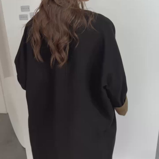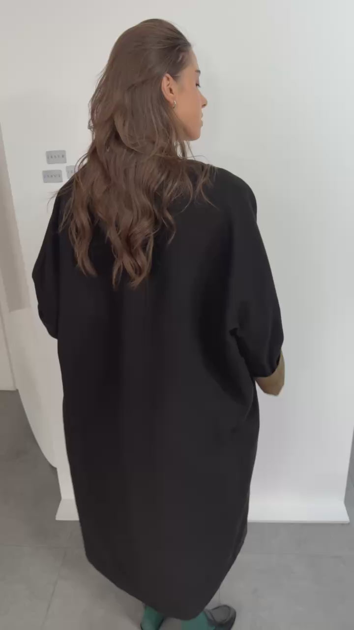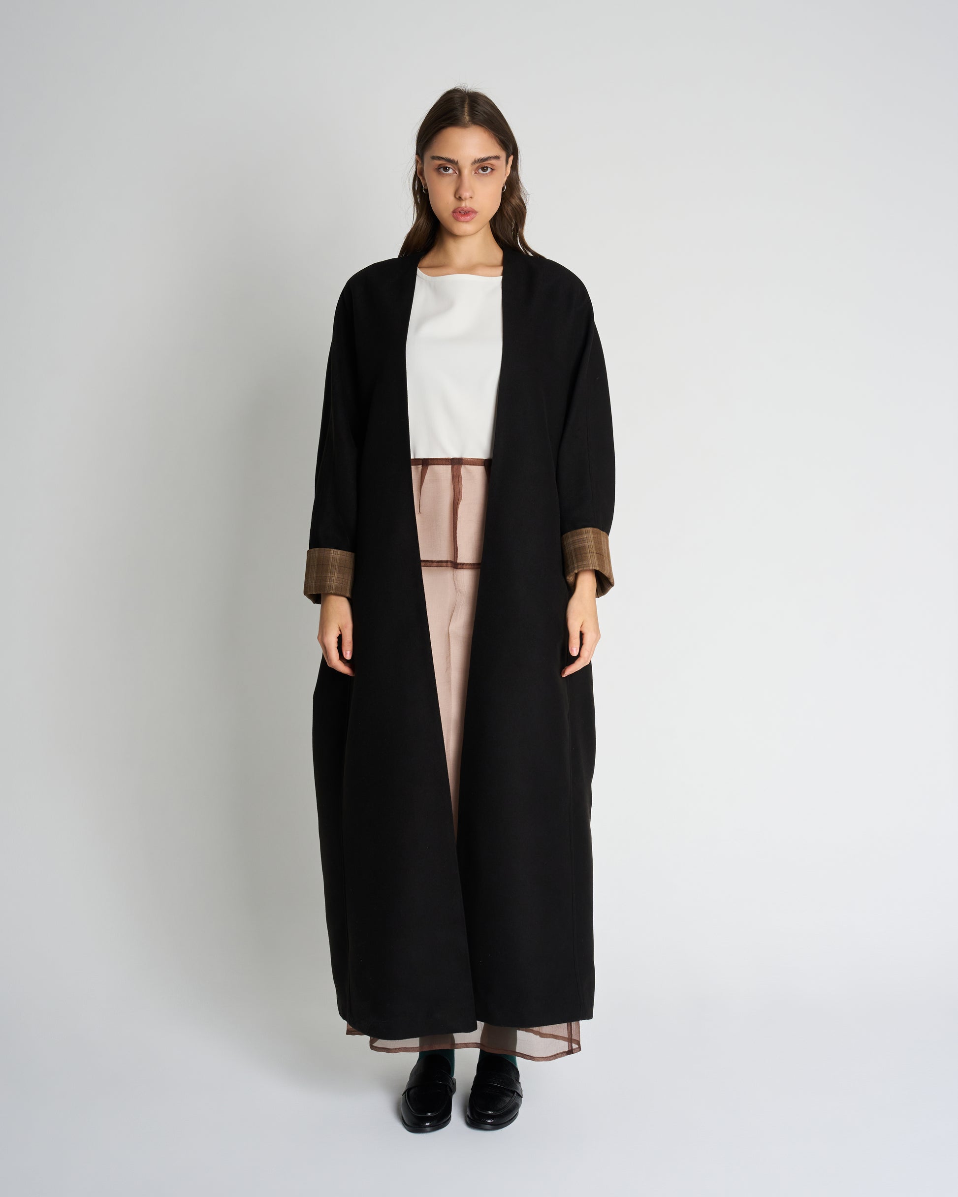 - Oversized bisht in wool with wide contrasting plaid cuffs.