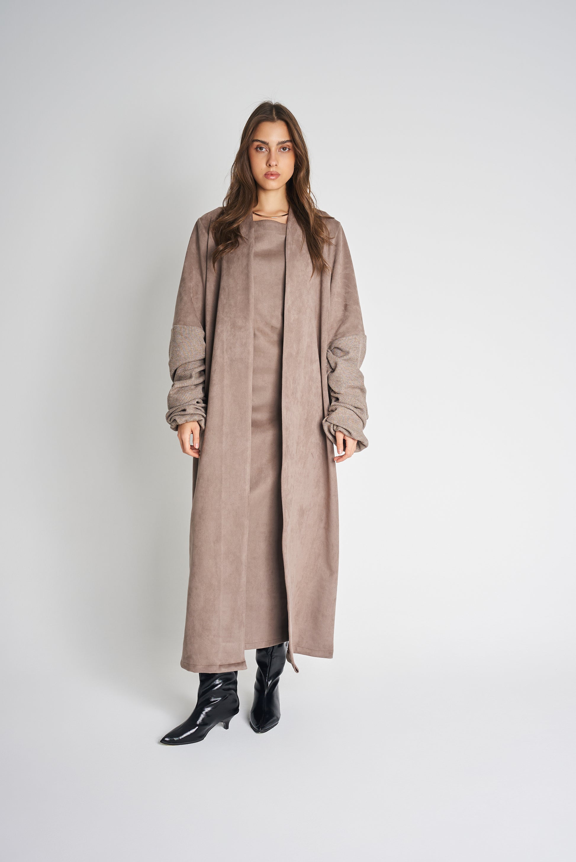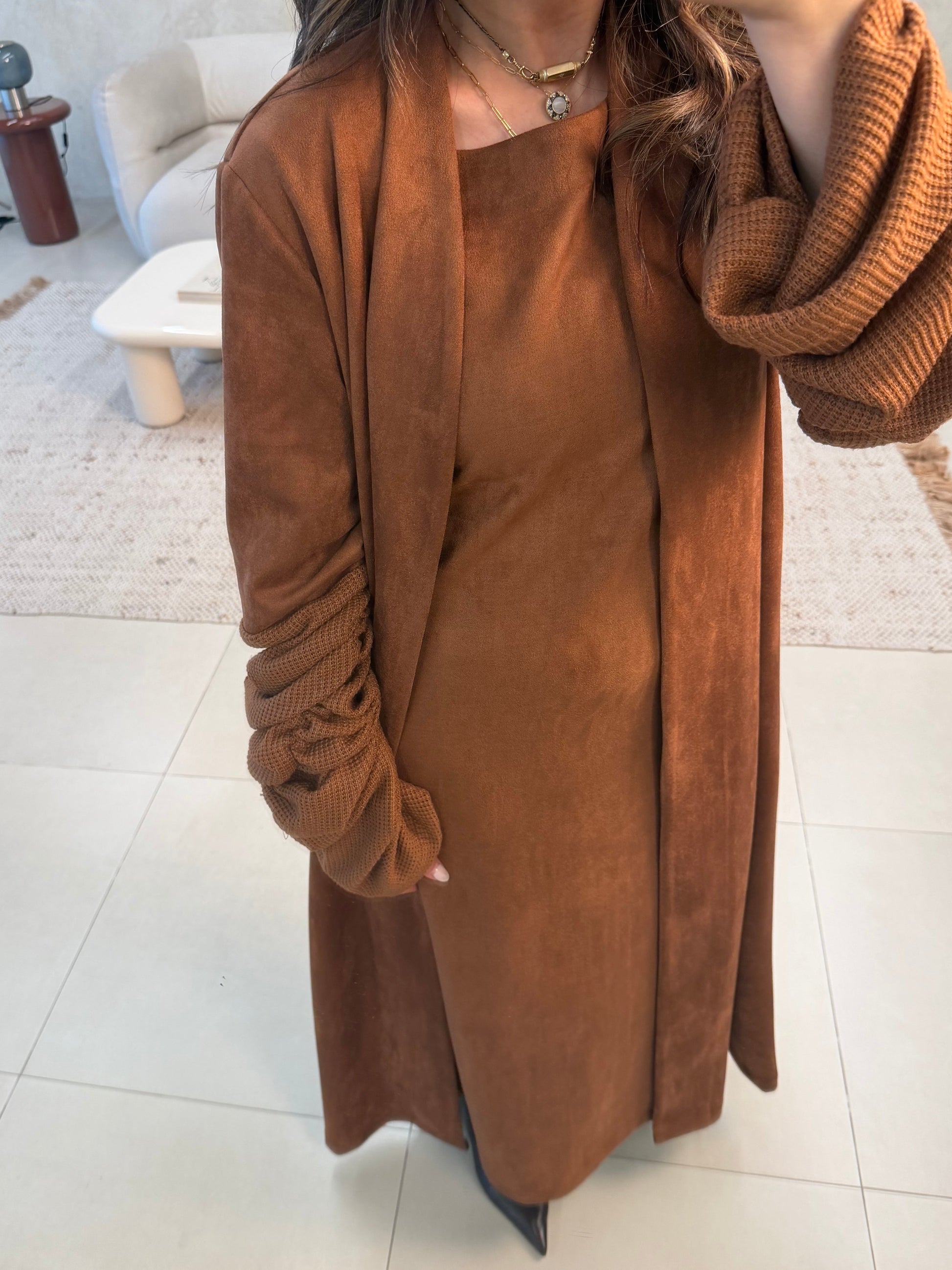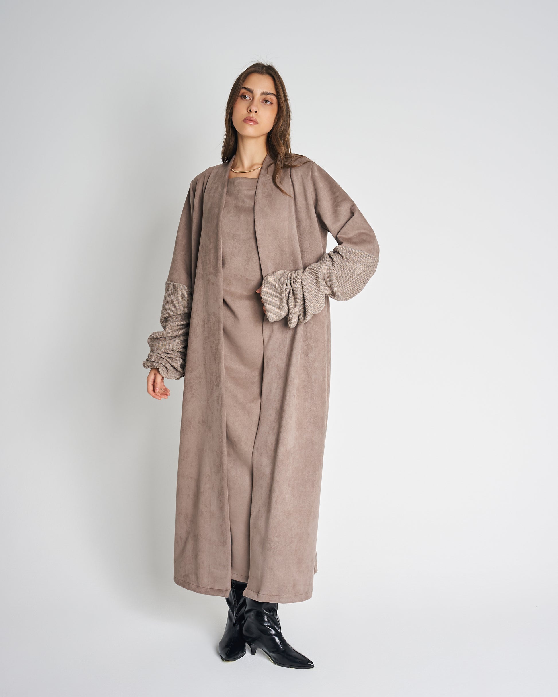 - Two-piece set: inner dress + outer bisht